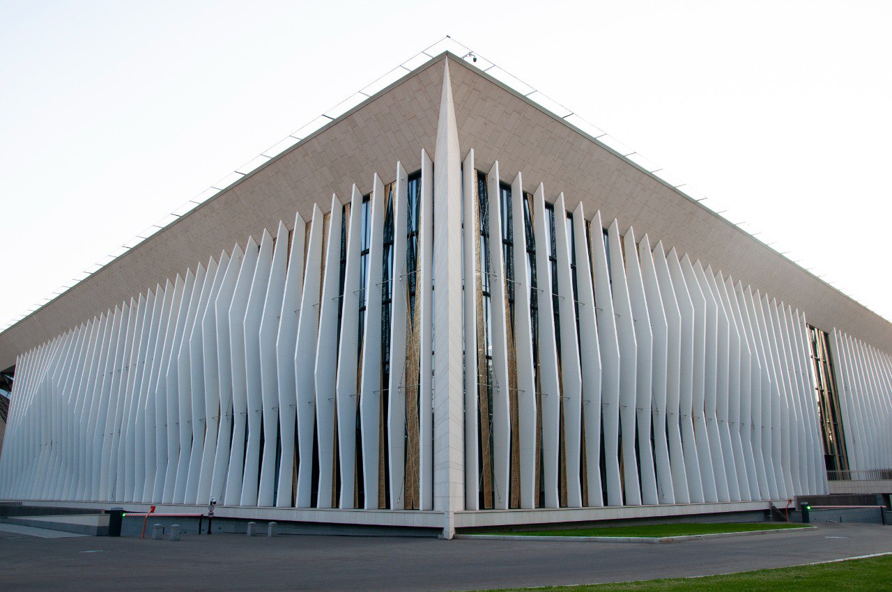 Симметричное решение дворца — характерная черта спортивных сооружений парка «Лужники», построенных в 50-е годы.