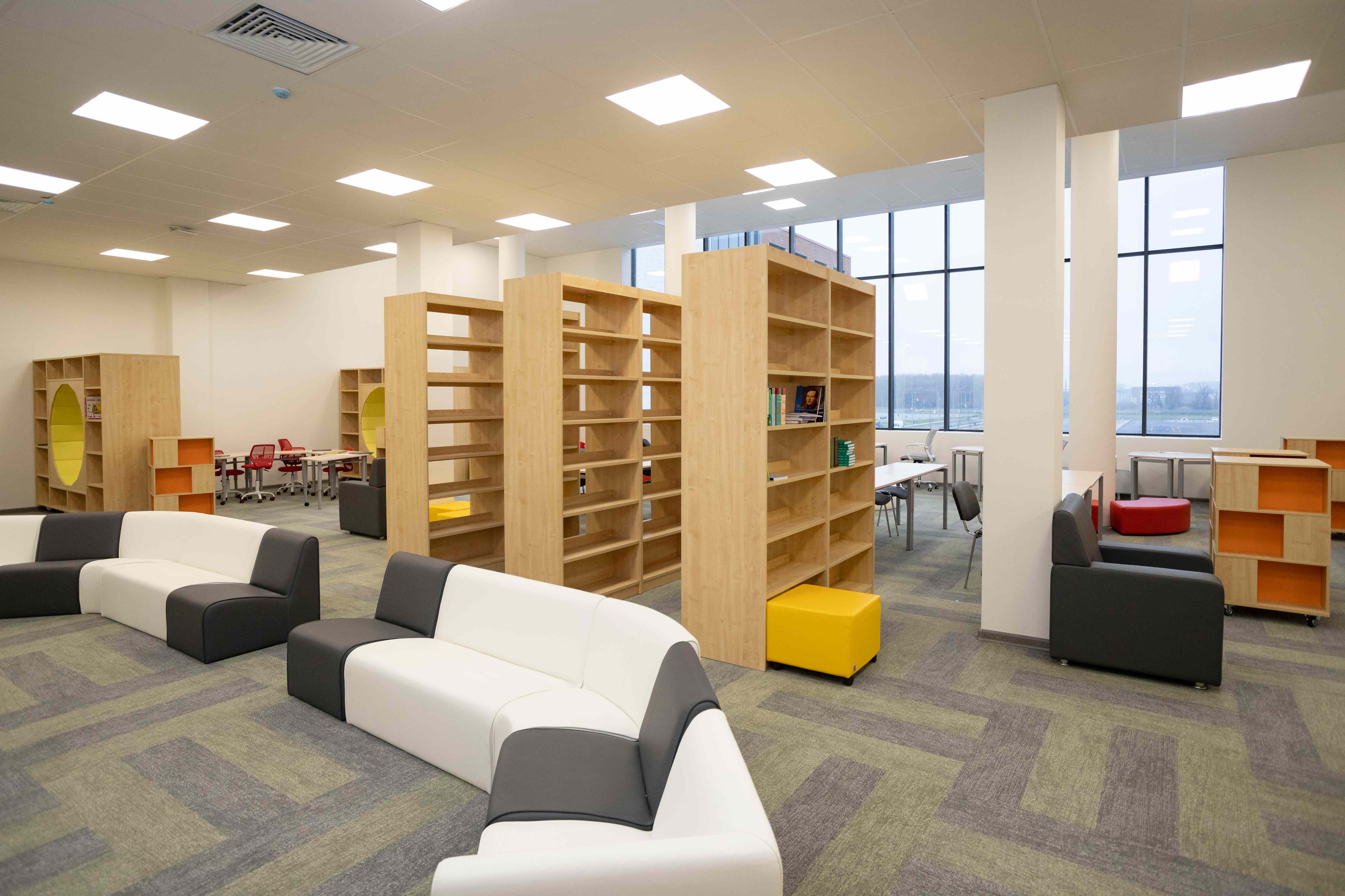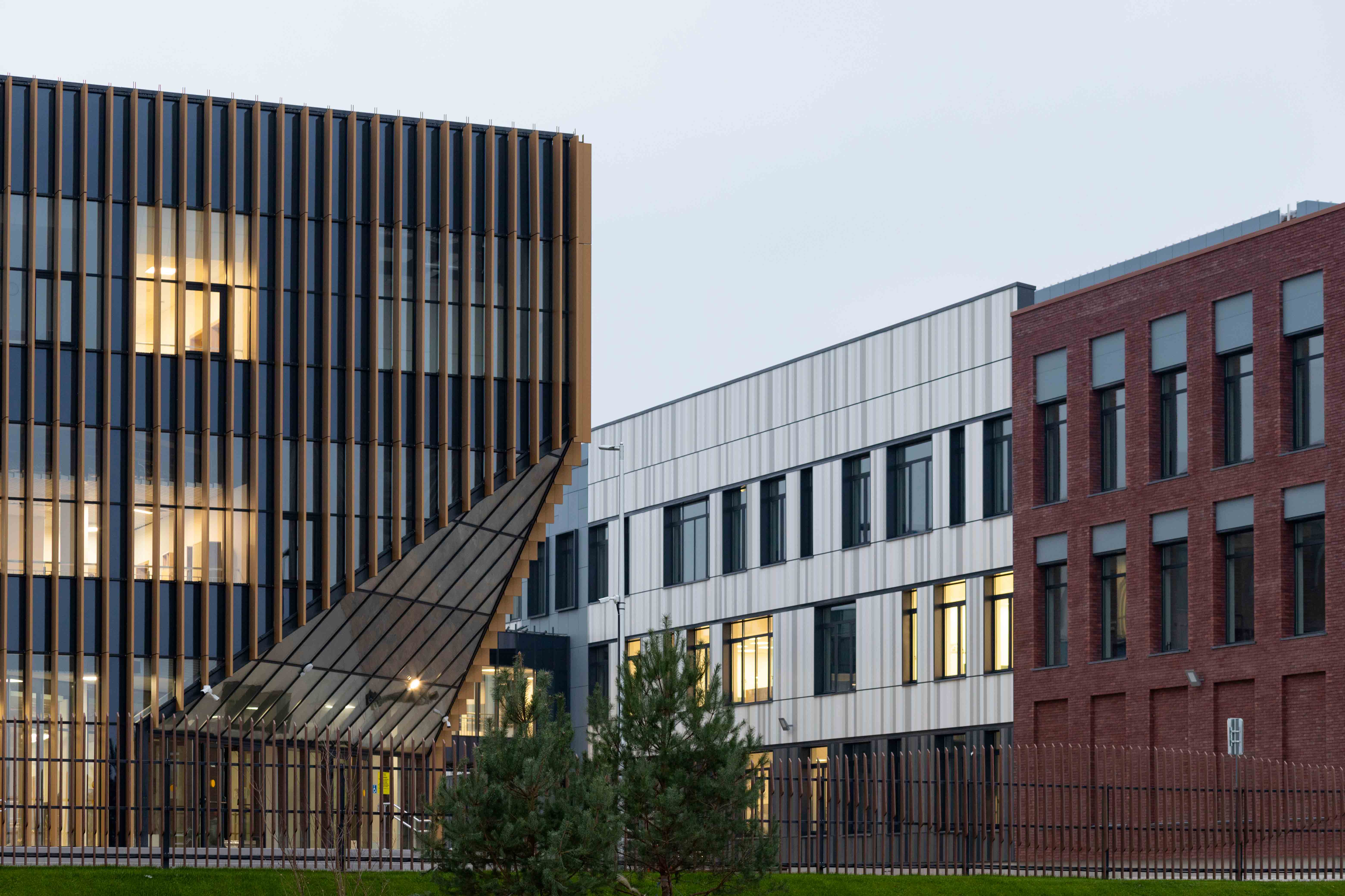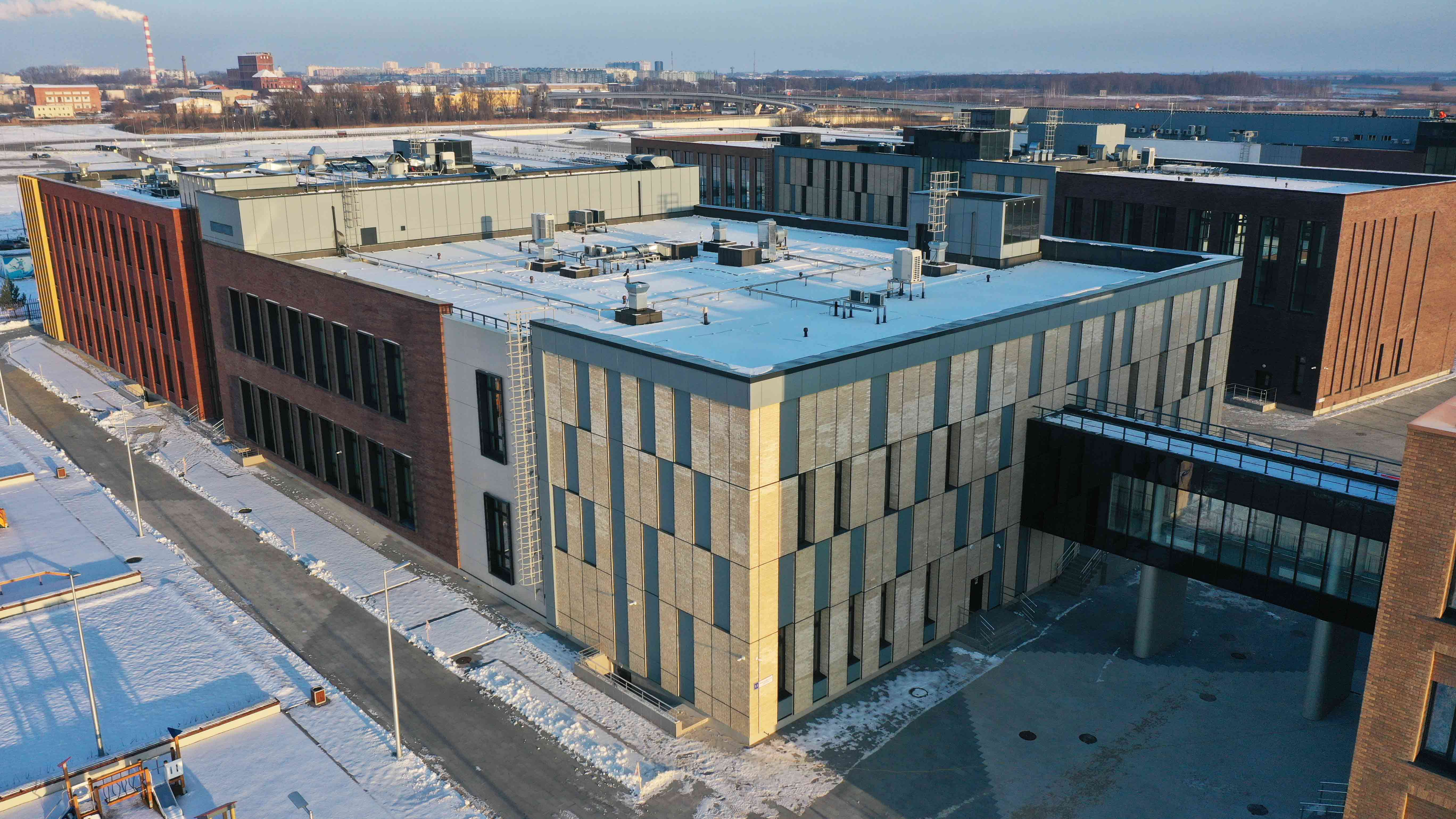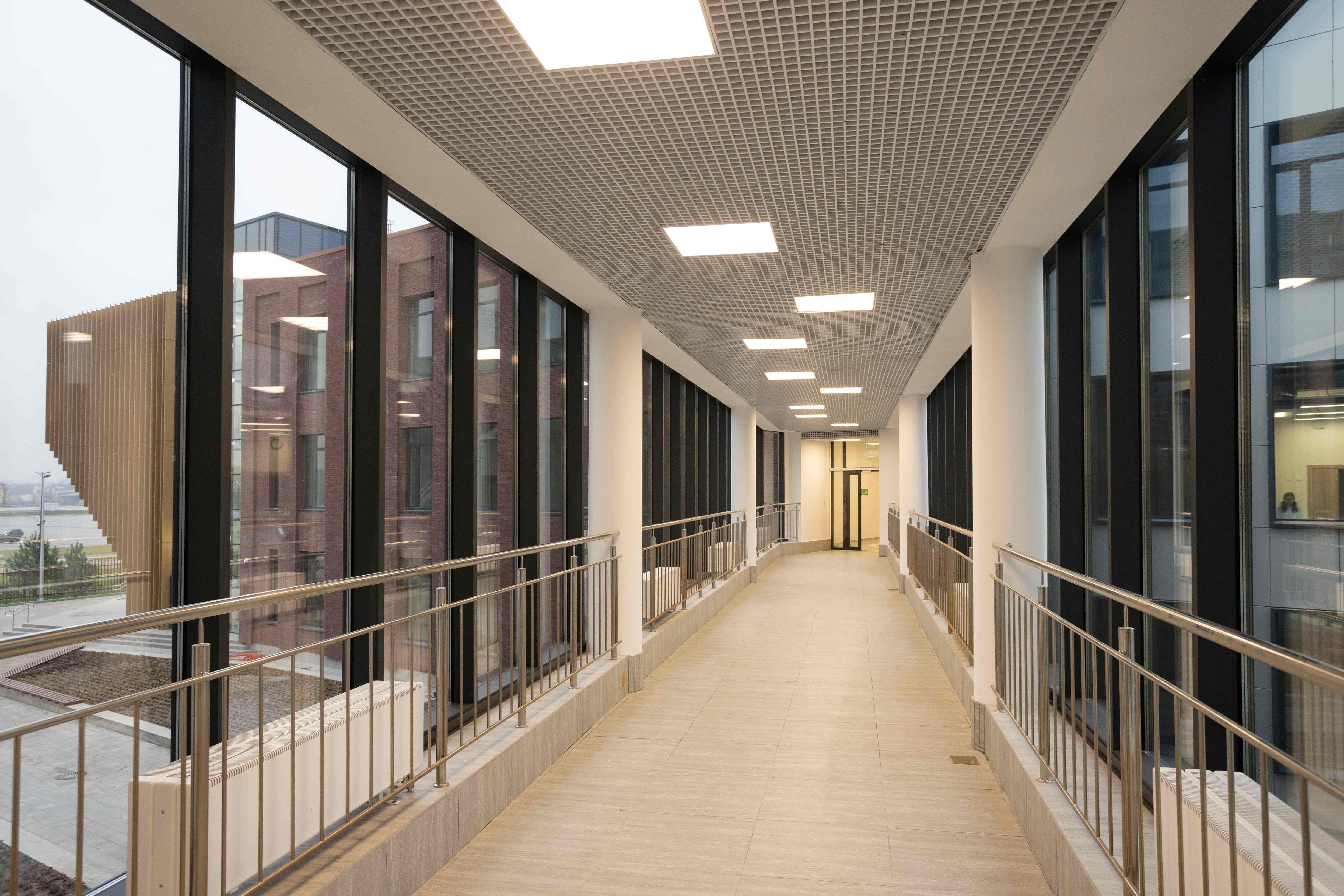 Корпуса образовательной части и интернаты связаны наземными переходами.