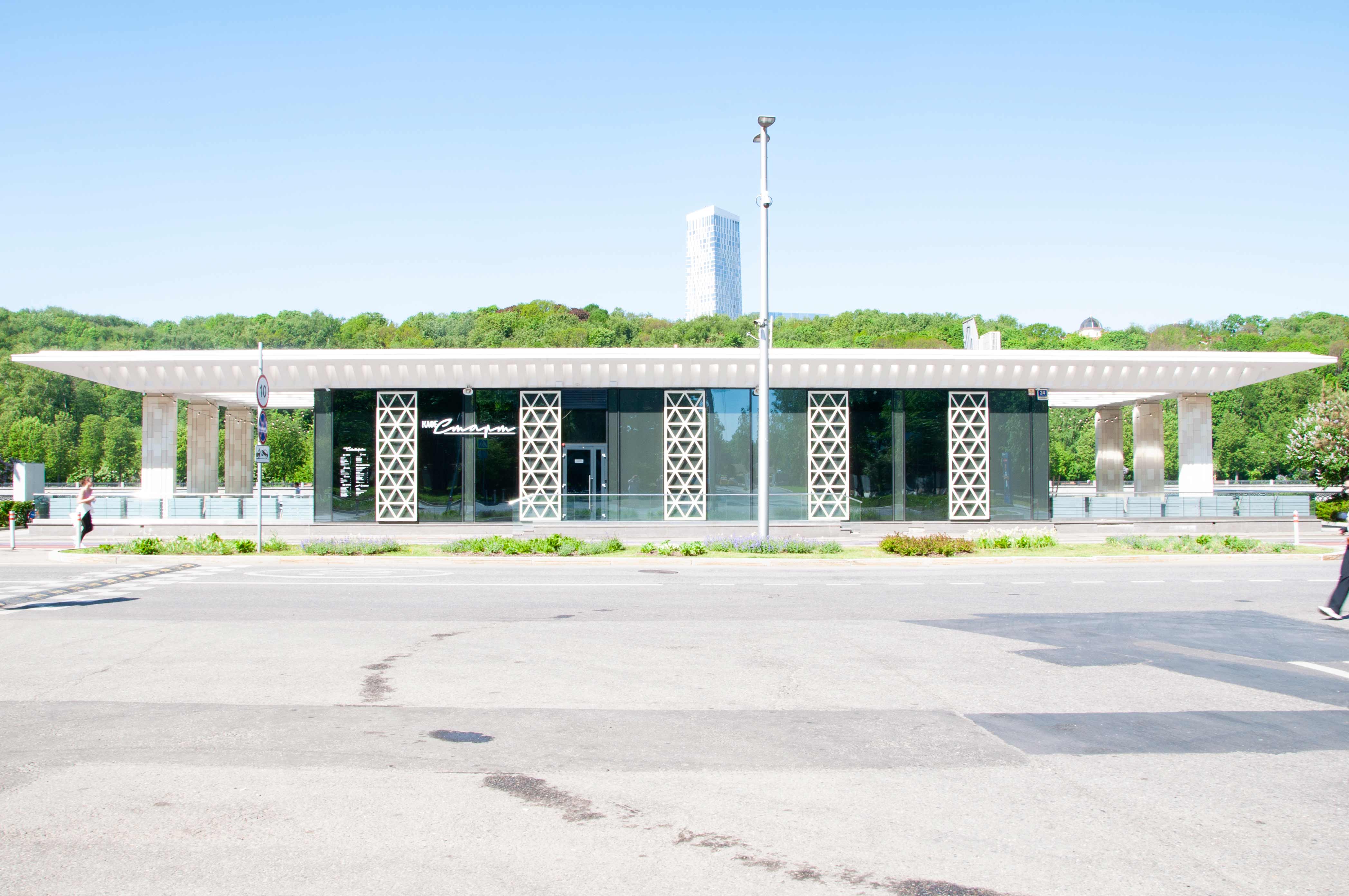 Объёмно-пространственная композиция павильонов строится на сочетании стеклянного объёма и открытых террас, объединённых единой кровлей.