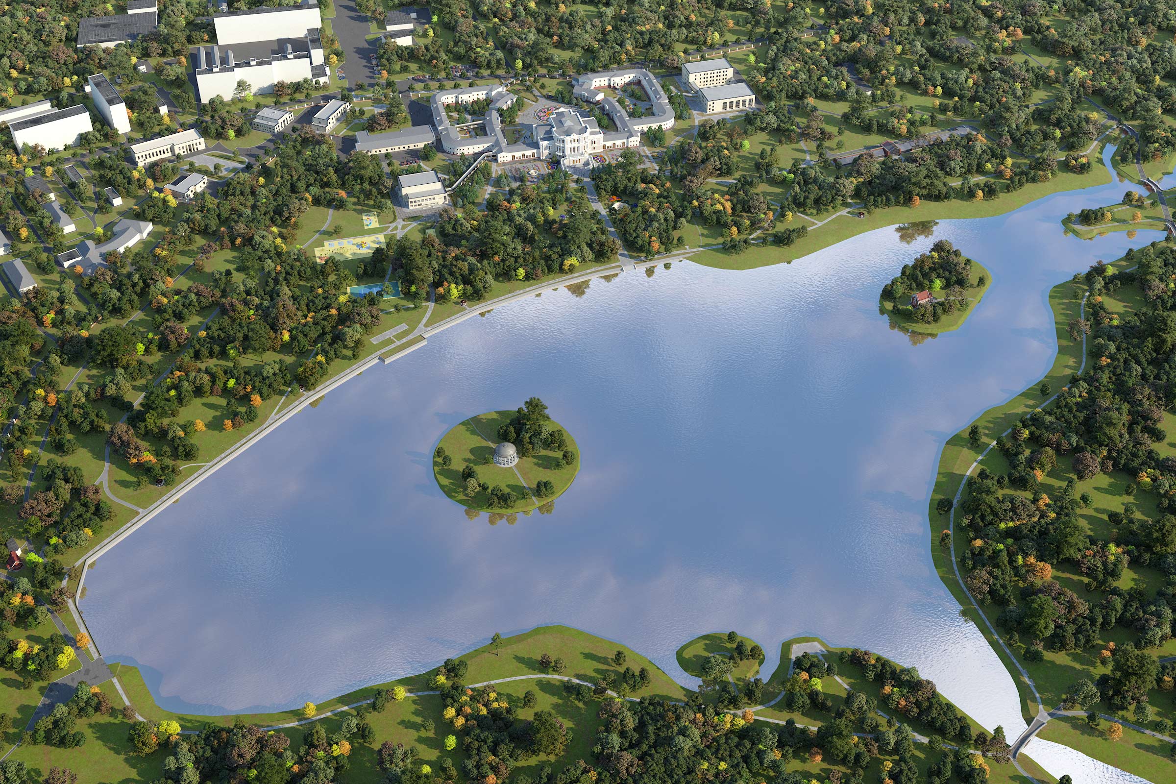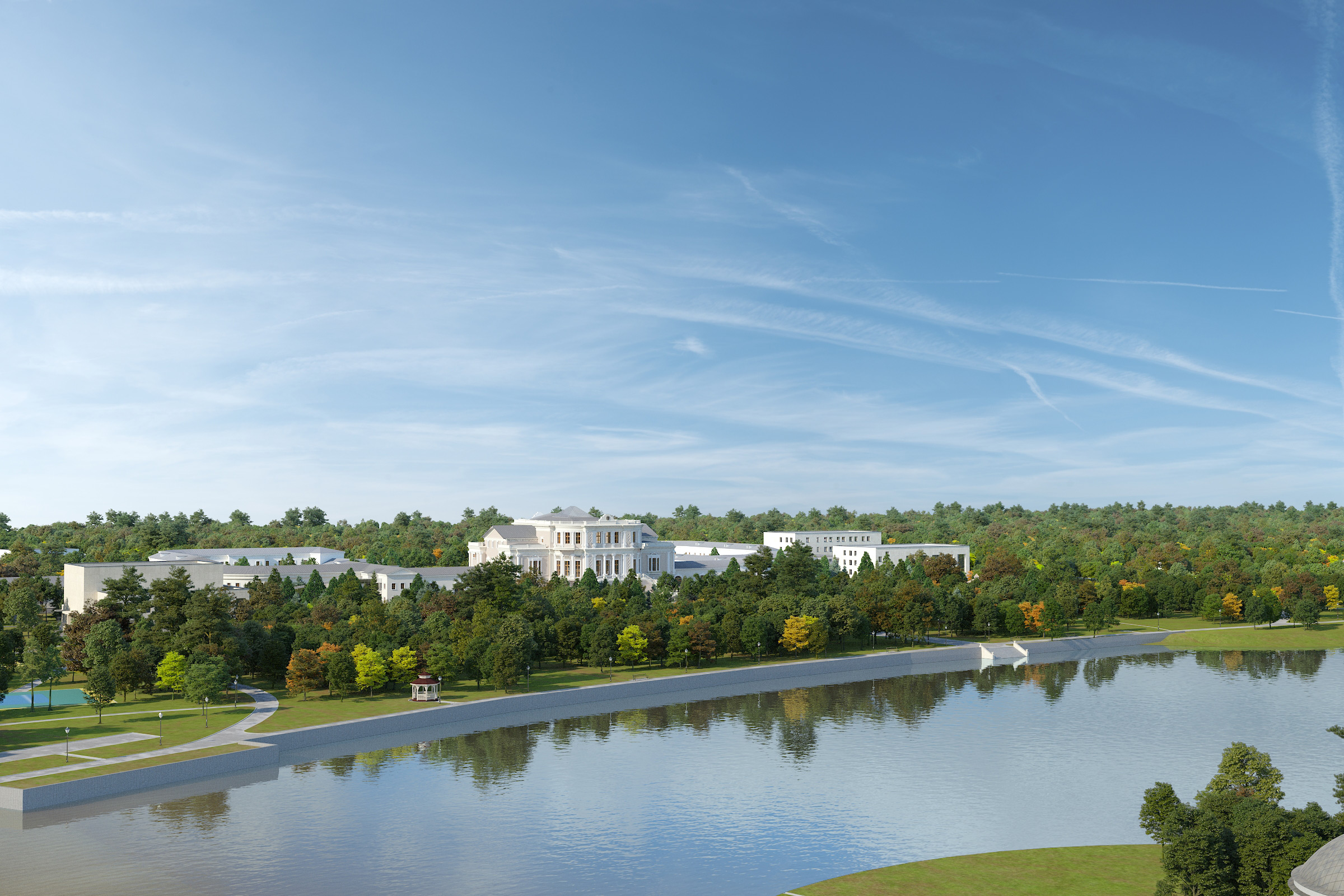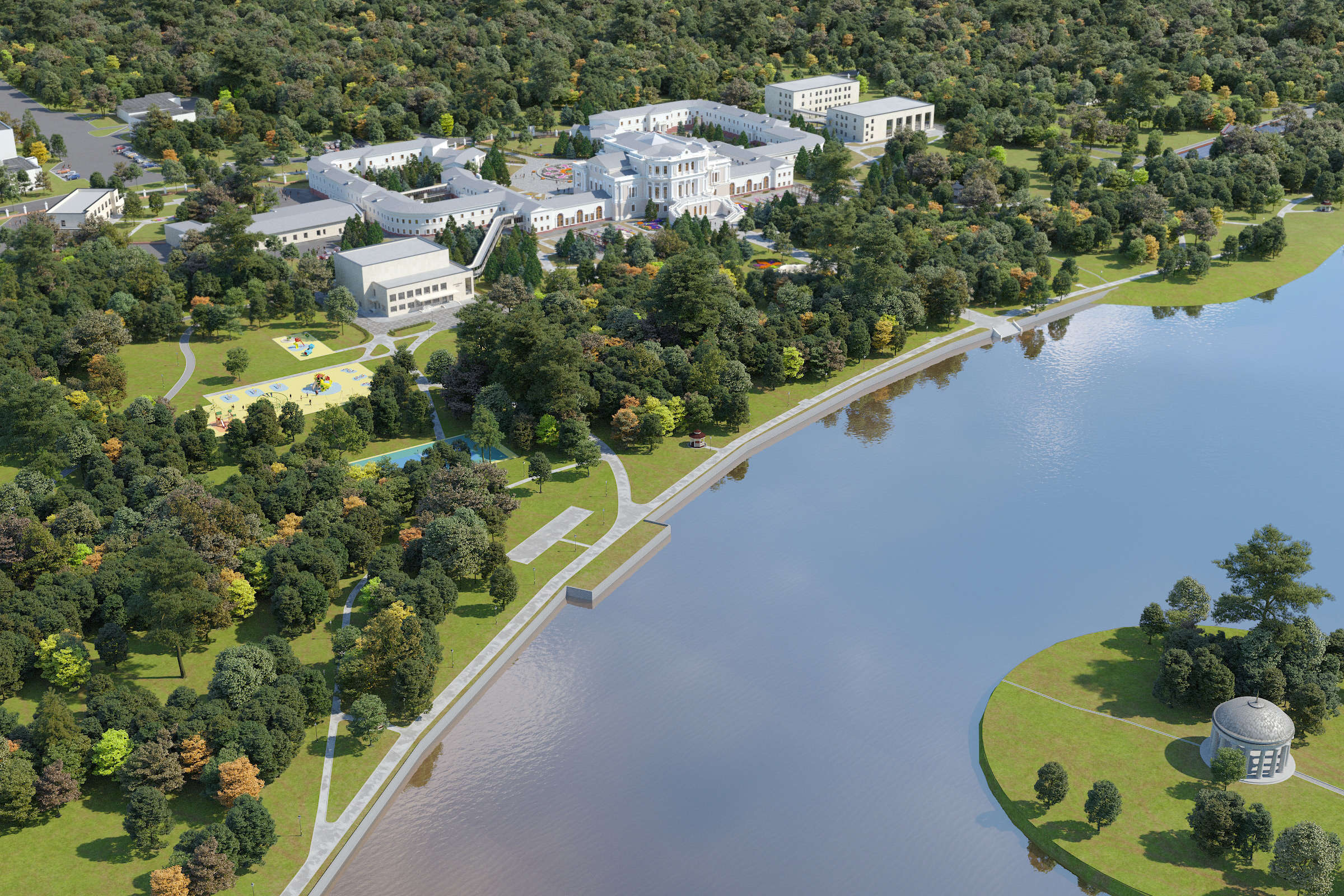 Проектом предусмотрена реставрация усадебного парка, являющегося прекрасным образцом английского паркового искусства XIX века.
